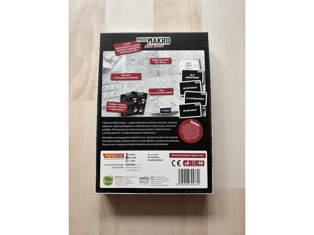 Vítejte ve městě, kde se na první pohled nic neděje… ale pod povrchem se skrývá spousta příběhů. V této jedinečné detektivní hře budete společně sledovat stopy, hledat souvislosti a řešit zapeklité případy. Každý detail může být klíčem. Ideální pro klidné večery, rodinné hraní i chvíle, kdy chcete zapojit hlavu a ponořit se do světa plného příběhů.Doplňkové parametry